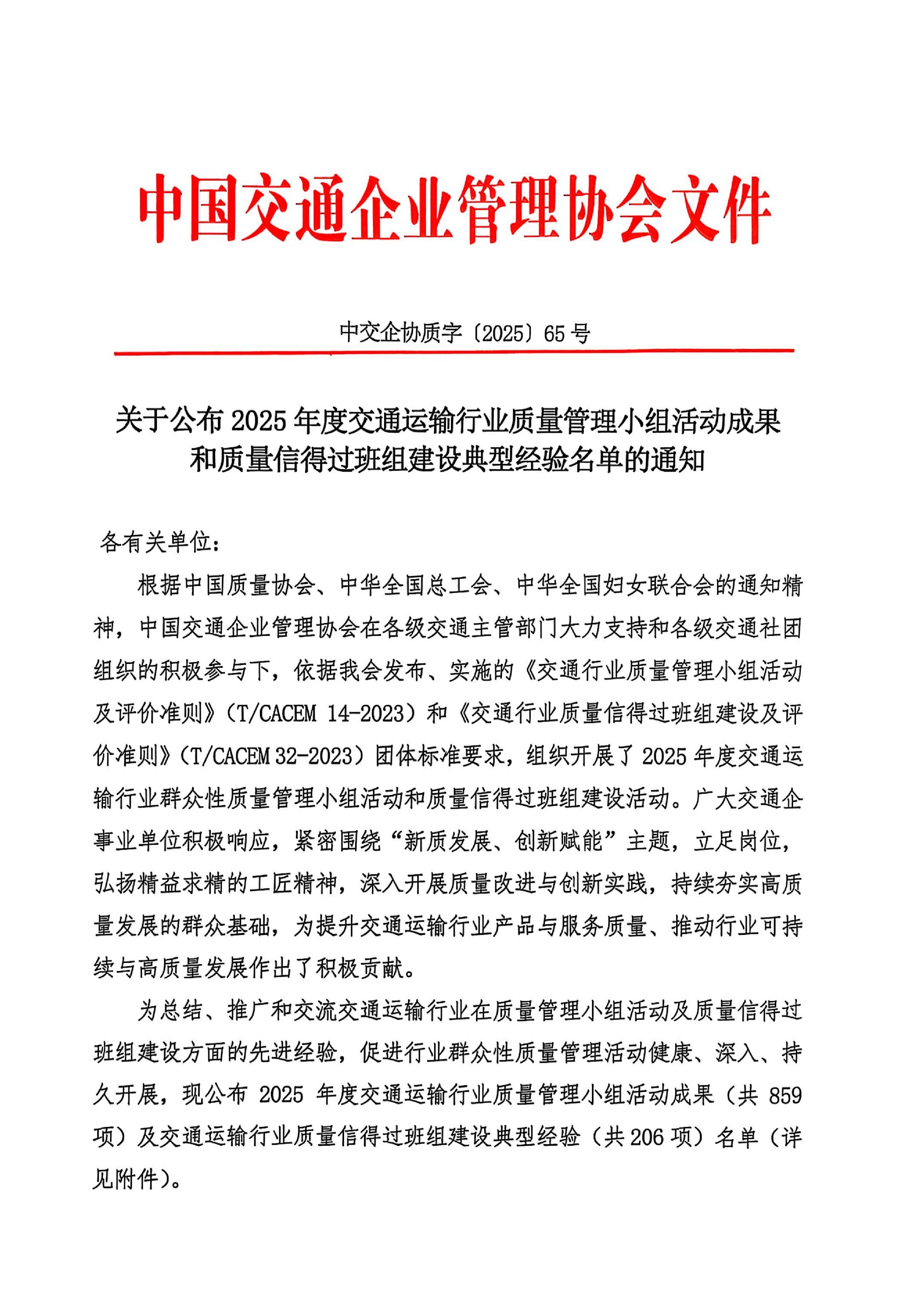 近日,中國公路建設(shè)行業(yè)協(xié)會、中國水利工程協(xié)會先后公布了第三屆全國公路建設(shè)質(zhì)量管理小組活動成果評審結(jié)果和2025年度水利企業(yè)質(zhì)量管理小組競賽活動結(jié)果。“···